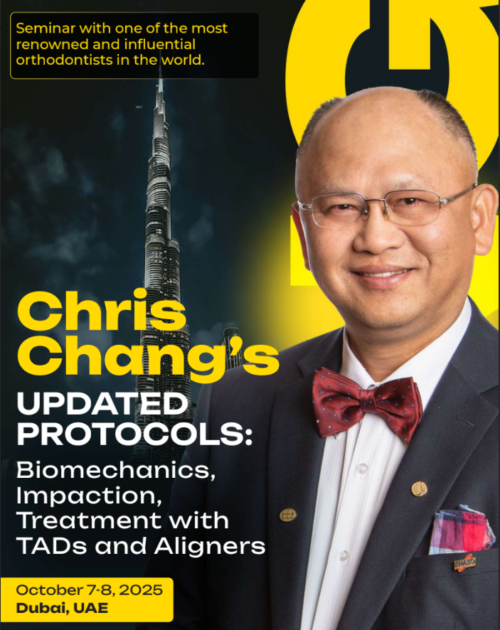 Don't miss out on seeing the course of Chris Chang's Updated Protocols: Biomechanics, Impaction, Treatment with TADs and Aligners in person and learn modern orthodontics from one of its pioneers, held in the vibrant city of Dubai. During this 2-day event, you will not only gain valuable orthodontic knowledge but also be inspired by Chris Chang’s exceptional energy and passion for advancing the field.